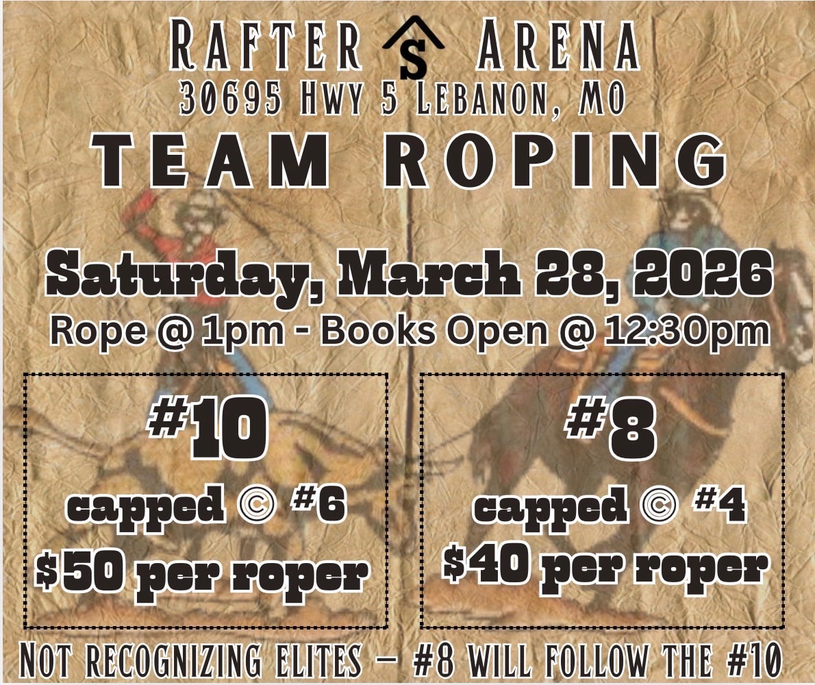 Show Me Show Off February 6 - February 7 Rafter S Arena 30695 Highway 5, Lebanon, MO, United States Pre register by February 1st! February 6th at 6:00pm February 7th at 11:00am